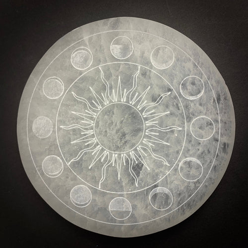 Moon Phase Selenite Round Crystal Charging Plate | 15 cm | Choose a Style | Morocco